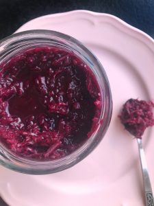 Klassisk surkål görs ju på vitkål, men eftersom vitkål är hög FODMAP så brukar jag göra på rödkål. Dessutom är den vacker i färgen och tillför lite extra färgpiff på tallriken. Surkål är lite som oliver, inte favoriten första gången men efter ett tag är det riktigt gott!
