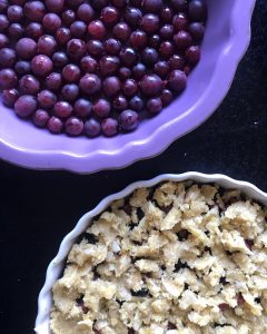Här har vi använt gelatinägg i en paleo-smulpaj istället för ägg.
