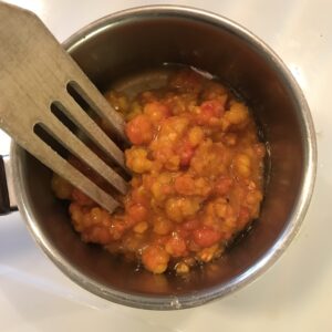 • Koka upp hjortron och vatten i en kastrull under omrörning.