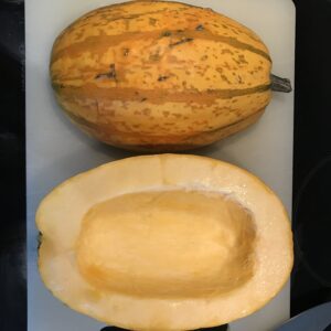 Nu ljuger jag visst lite. Vi har ätit en del butternut squash faktiskt. Men om vi pratar om de där pumporna som dyker upp nu runt halloween så är de nya för oss. Spaghettipumpa visade sig vara väldigt enkelt att laga till. Bara att krydda lite och använda istället för pasta och ris!