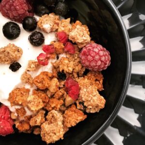 Vi har tidigare delat med oss av en variant som är helt AIP-godkänd. Inga nötter, mandlar, ägg eller fröer. Här finns vårt recept på Jordmandel och blåbärsgranola. Frukost och AIP brukar vara lite klurigt, speciellt när man saknar ”sitt gamla vanliga”, då är recepten här en riktig räddning!