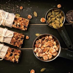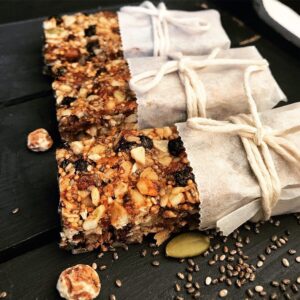 När jag slutade med gluten, mjölk och vitt socker blev det bättre, och jag dippade inte alls på samma sätt (även om det sedan blev ännu mer tydligt på paleo/aip-kost.) Men jag började göra energibars för att ha med mig i väskan att ta till utifall att. De gjordes med olika fröer, havregryn, äggvita och torkade blåbär, och var otroligt goda!
