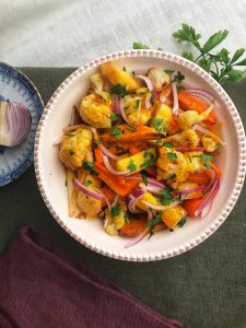 Så här sista veckan inför jul då vardagen ofta krockar med julstök vill vi dela med oss av ett nytt recept på julig vardagsmat, nämligen rostade rotfrukter med saffransvinägrett! Den här har vi gjort ett par gånger nu och blir en härlig stämningshöjare av vardagsmaten tycker jag. Den går fint att göra AIP genom att utesluta senap och svartpeppar.