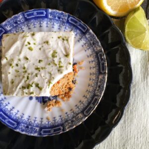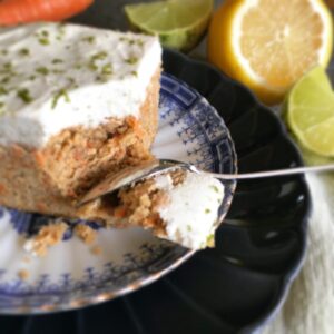 Den här är en morotskaka paleostyle som verkligen är supersaftig och frostingen är lime-ig och fräsch!