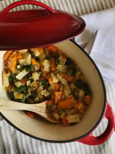Det här receptet på grönsaksgryta är egentligen en rejäl kylskåpsrensning. Ta vad du har och släng i bara. Det kan liksom inte bli fel. Utgå från kryddorna i receptet och kör som det är eller freestyla med timjan, oregano, basilika, gurkmeja, salvia etc. ”Krydda som en karl” säger Niclas till mig och skrattar. Jag kryddar på tills jag tycker det räcker. Och sen kryddar jag lite till…. 🙂