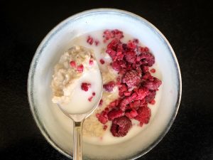 Vill du inte ha mjölk men ändå ha någon typ av vätska till så är tinade frysta blåbär eller hallon ett hett tips. När man tinar dem blir lite rinniga och perfekt till gröt tycker jag.