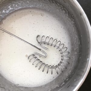 Jag låter bara gelatinet smälta i kastrullen och vispar sen för hand. Så något måste vara olikt… Vilket gelatin använder du?