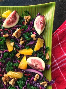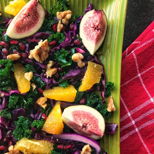 Grönkålssallad på julbordet är både vackert och ett riktigt fräscht tillbehör till den klassiska julmaten. Dessutom väldigt enkel att ”sno ihop” speciellt om du förberett dressingen och rostat nötterna dagen innan. Vill du göra salladen enligt AIP så utesluter du bara valnötterna och svartpeppar. Valnötterna kan du till exempel byta ut mot tärnat äpple, det blir jättegott!