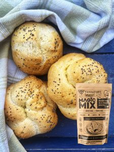 Ett recept på microbröd där vi använder en helt ny mjölmix, Magic Mix, som vi är väldigt glada att äntligen fått in i vår webshop. Den är dessutom ok för keto- och lågkolhydratkost. Vi börjar med ett litet parti och hoppas att du ska älska den lika mycket som vi gör! Mjölet innehåller endast 1g kolhydrat/100g…!