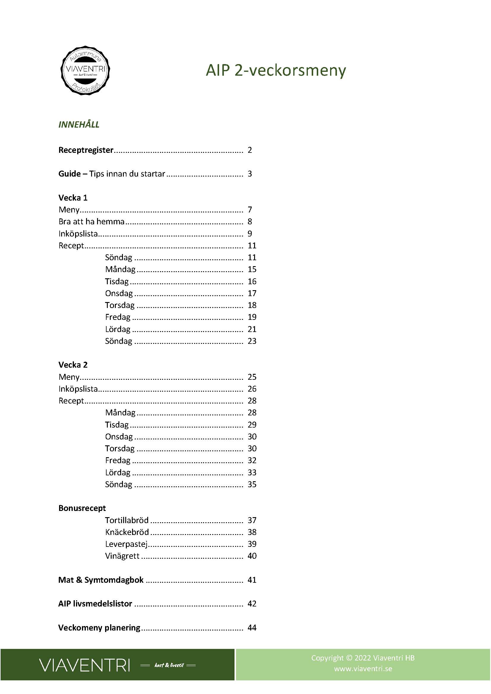Vår AIP meny är framtagen för att ge dig varierad, näringsrik och god vardagsmat. Du slipper skriva inköpslistor och fundera på vad du ska äta under kommande veckor. Vi har tänkt åt dig! Det är bara att ladda ner, skriva ut och börja laga god mat.
