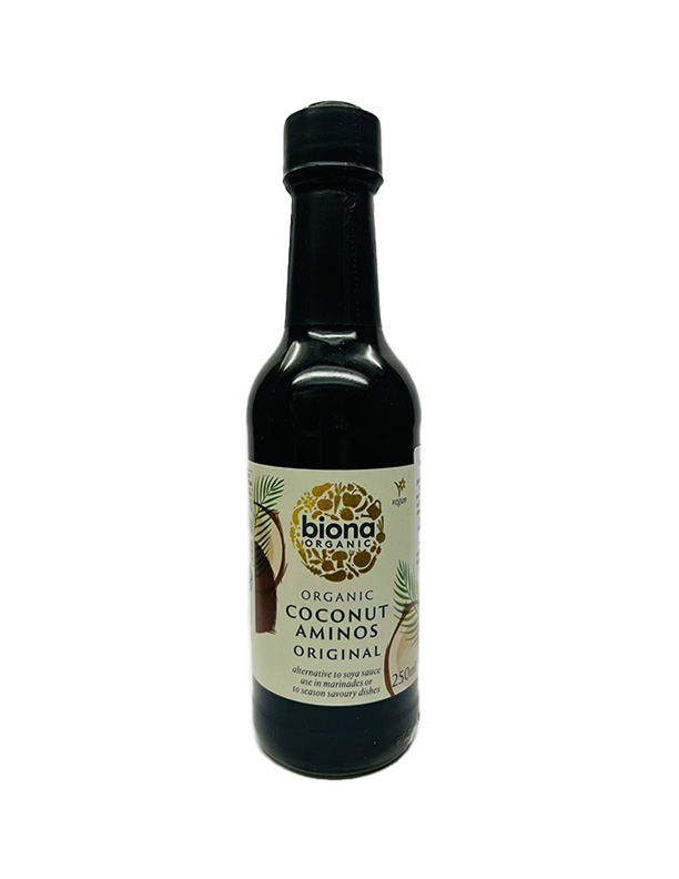 Skip to contentCoconut Aminos är ett alternativ till soja och görs på kokosnötsnektar och kokosvinäger samt havssalt. Produkten innehåller 17 aminosyror, mineraler och vitaminer, har ett lågt GI-värde och neutralt pH-värde.