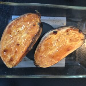 Dela en sötpotatis mitt itu.