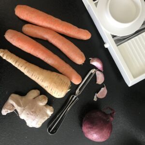 En annan god variant: Morot Stjälkselleri Squash Rödlök Vitlök Ingefära